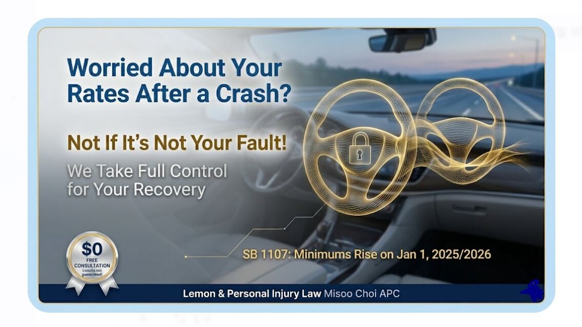 많은분이 상대방 과실인데 먼저 내 보험을 쓰면 혹시 손해라고 생각하시지만, 캘리포니아 보험법(Proposition 103)은 보험 회사는 운전자의 과실이 없는 사고를 이유로 보험료를 인상하거나 갱신을 거절할 수 없습니다. 즉, 내 잘못이 아니라면 내 보험을 사용하는 것은 법적인 보호를 받는 정당한 권리입니다.