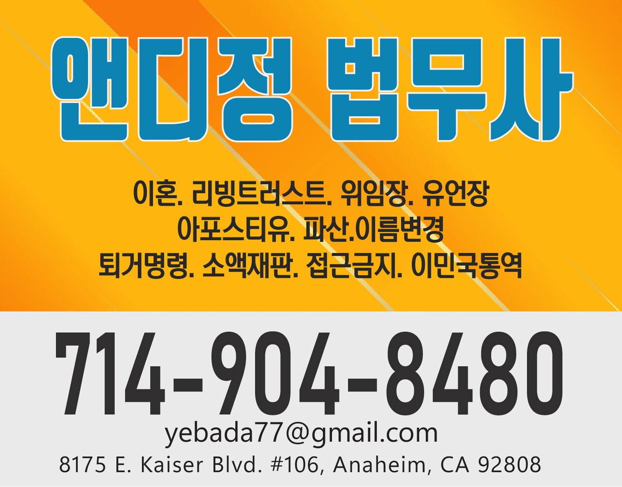이혼.소액재판, 유언장, 위임장작성, 이름변경, 퇴거명령, 개인 파산 리빙트러스트. 메디칼 어드밴스 디랙티브. 아포스티유.번역 서류작성