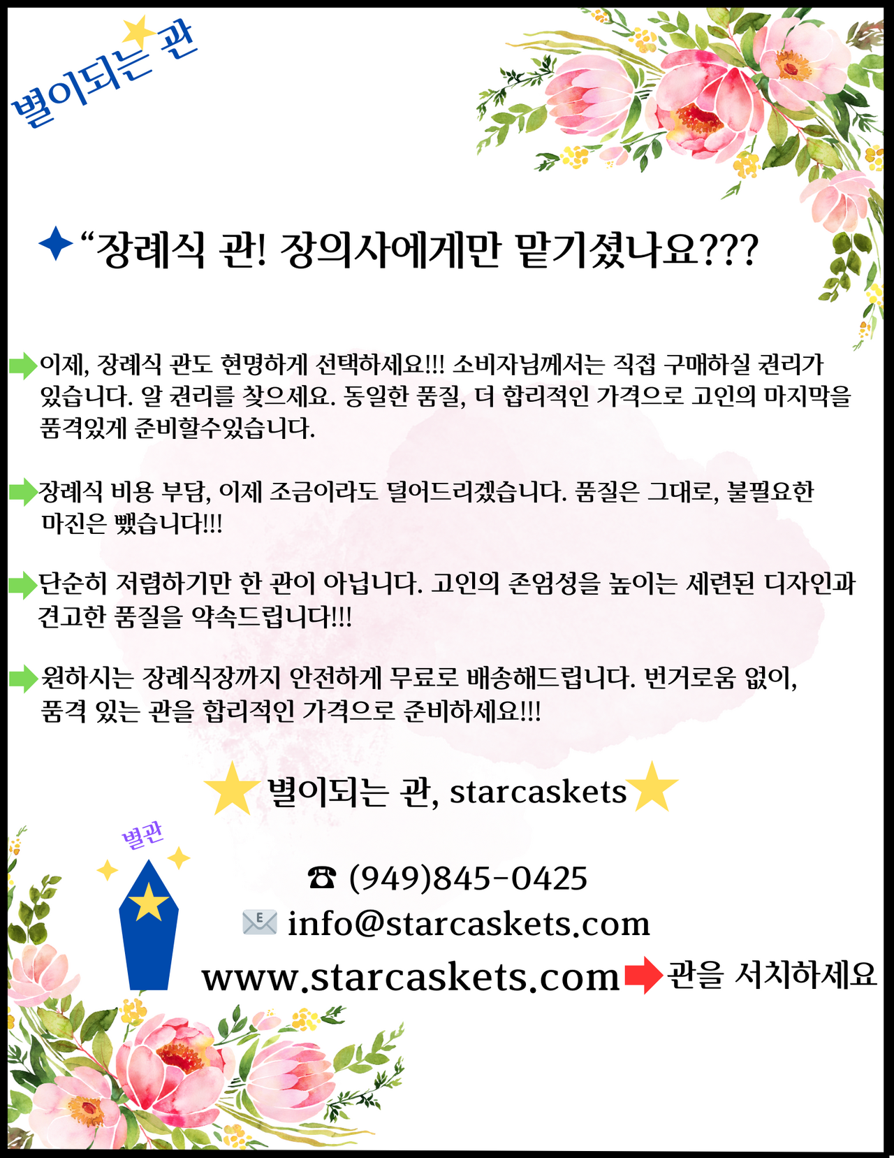 장례식 관을 시중가에 20% 저렴하게 판매합니다.
