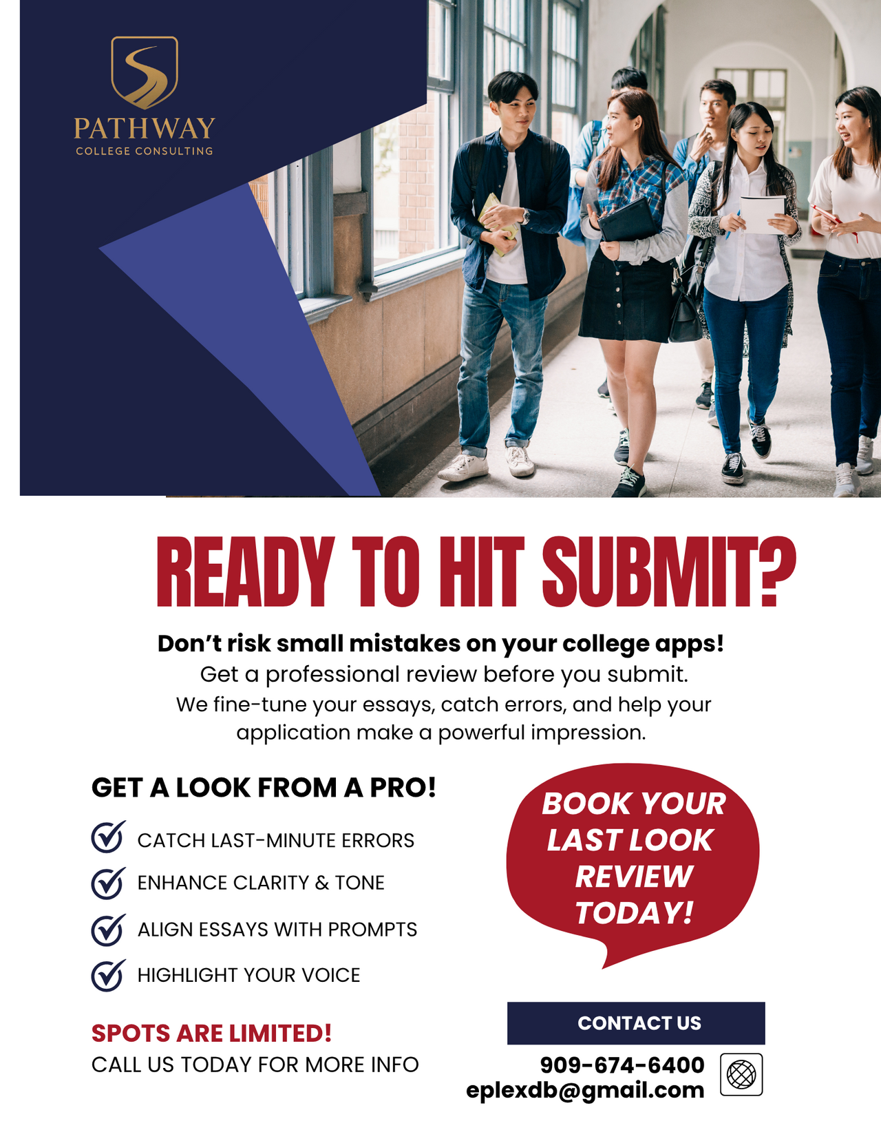 작은 실수를 수정하고, 원서의 일관성을 확인하고, 에세이를 한층 강화하여 자녀의 지원서가 입학 심사위원의 눈에 100% 완벽하게 준비될 수 있도록 최선을 다하겠습니다.