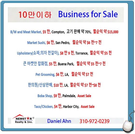 * 샌페드로의 대형마켓 내 운영 중인 마켓스시 비즈니스 매매