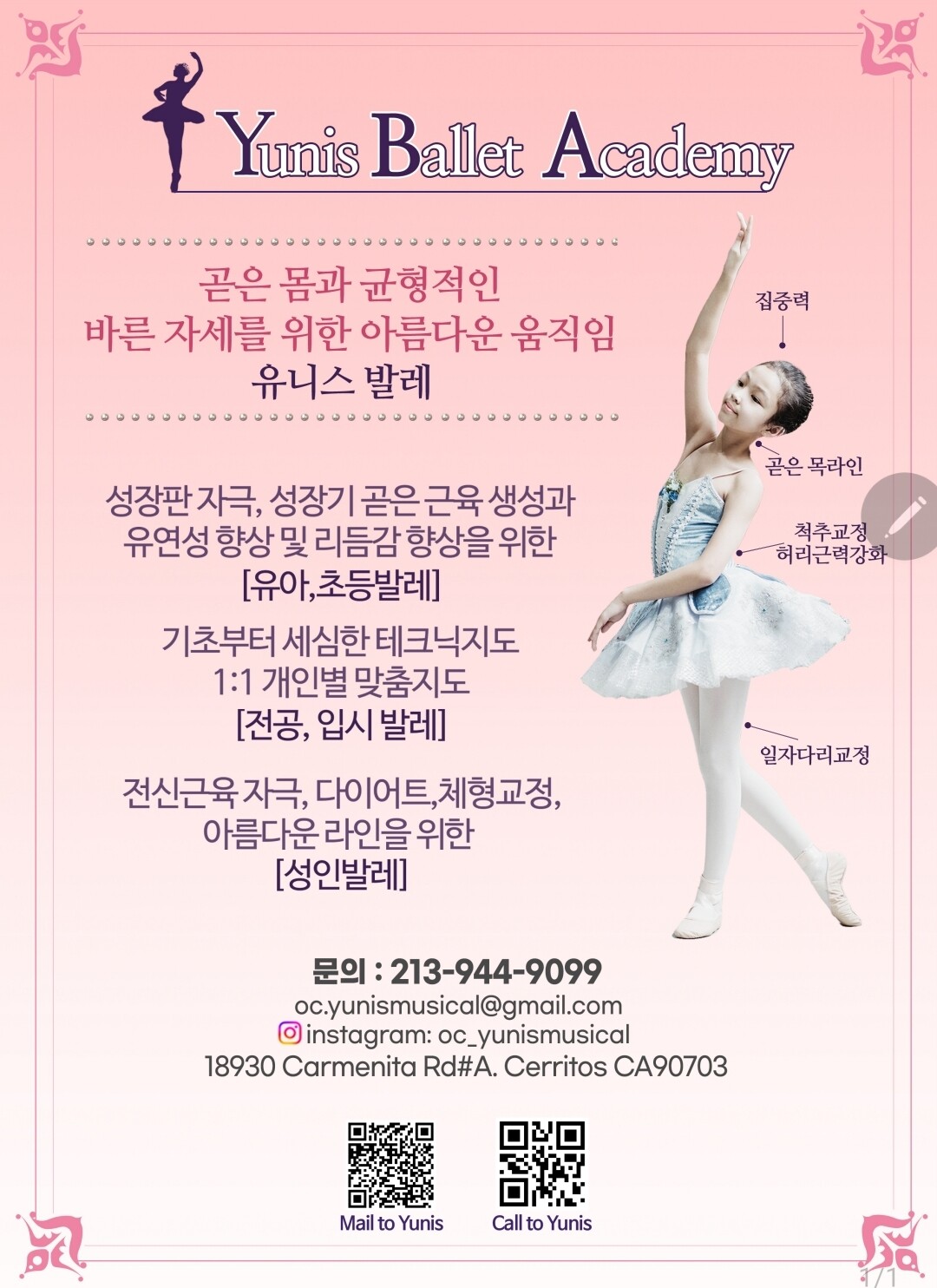 안녕하세요 유니스 발레 아카데미에서 학생들을 모집합니다.