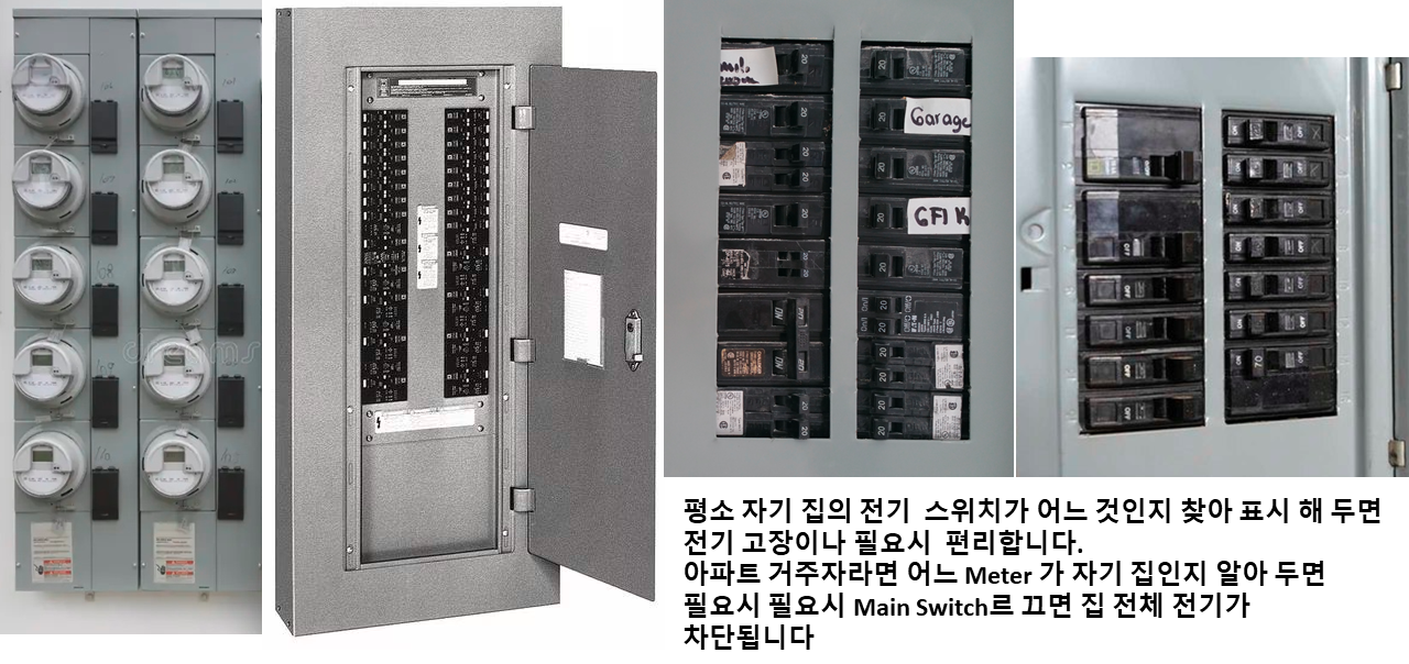 ▶ 평소에 건물 밖으로 나가는 전기 장치들, 특히 대용량 에어컨, 전기차 충전기 브레카 스위치 표시해 두세요
