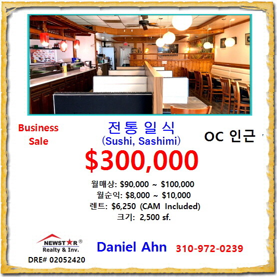 정통 일식 (Sushi, Sashimi), $30만, OC 인근