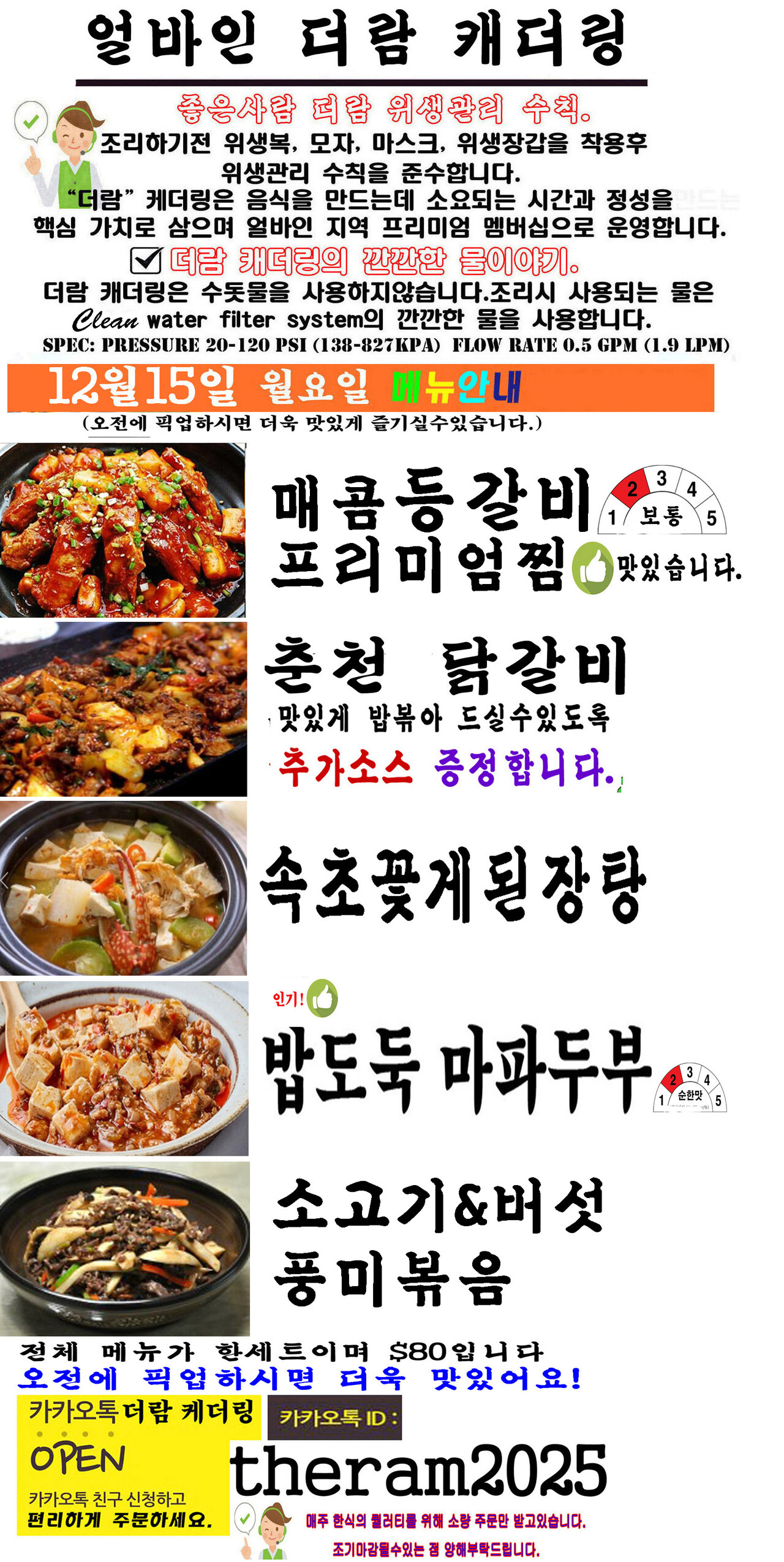 더람캐더링은 당일 조리를 원칙으로 정수된 물을 사용하여 음식을 만들며,