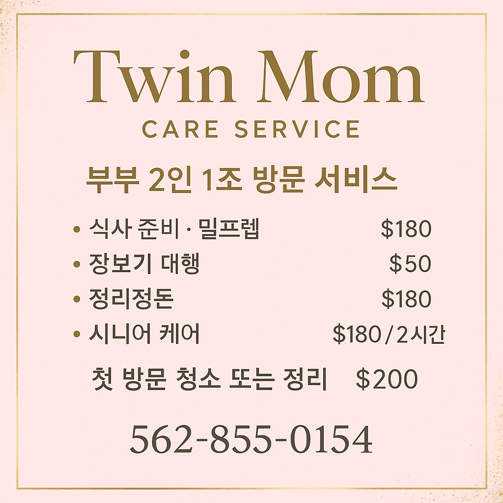 Twin Mom Care Service – 막강 K- 한식 경력 쉐프 부부가 직접 방문합니다