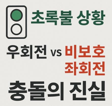 우회전 vs 비보호 좌회전 충돌 사고는 구조적으로 다음 패턴을 가집니다.
