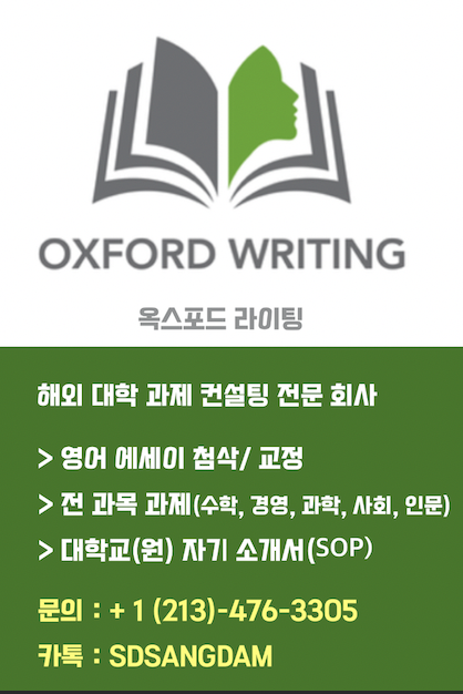 미국 석사 출신 / 영어 에세이 첨삭/ 컨설팅 / 미국 대학 온라인 수업 지도 해드립니다.
