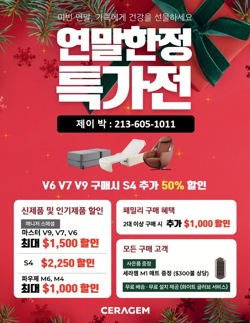 세라젬 플러튼의 스페셜 프로모션은 213-605-1011 제이 박 으로 연락주세요!!^^