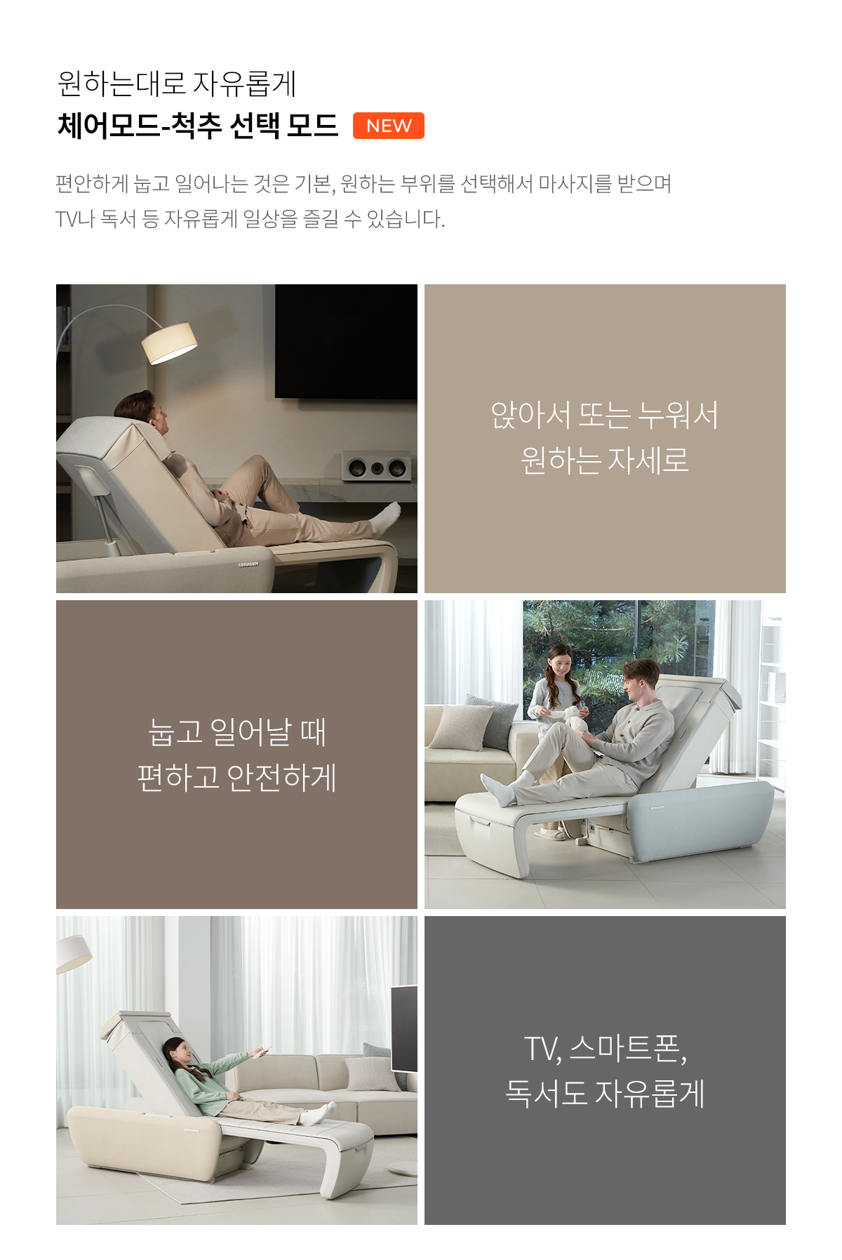 세라젬 마스터제품은 마사지체어,지압침대류와같은 휴식가전 달리