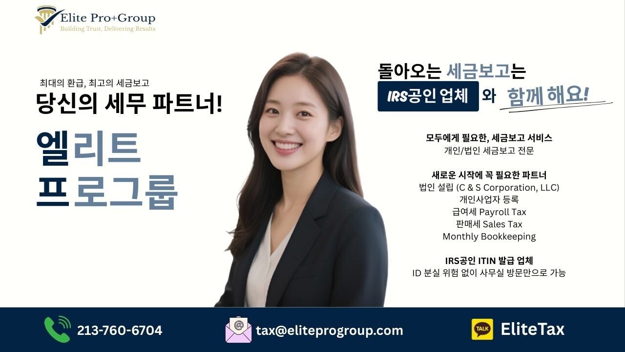 ✔ ID 사본 + Elite Pro Group의 인증이면 ITIN 발급 가능!