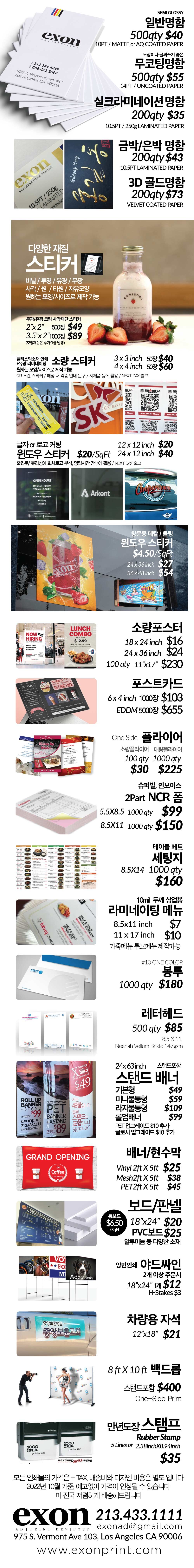명함, 스티커, 포스터, 배너 등 각종 인쇄물 전문 엑손프린트 가격 안내