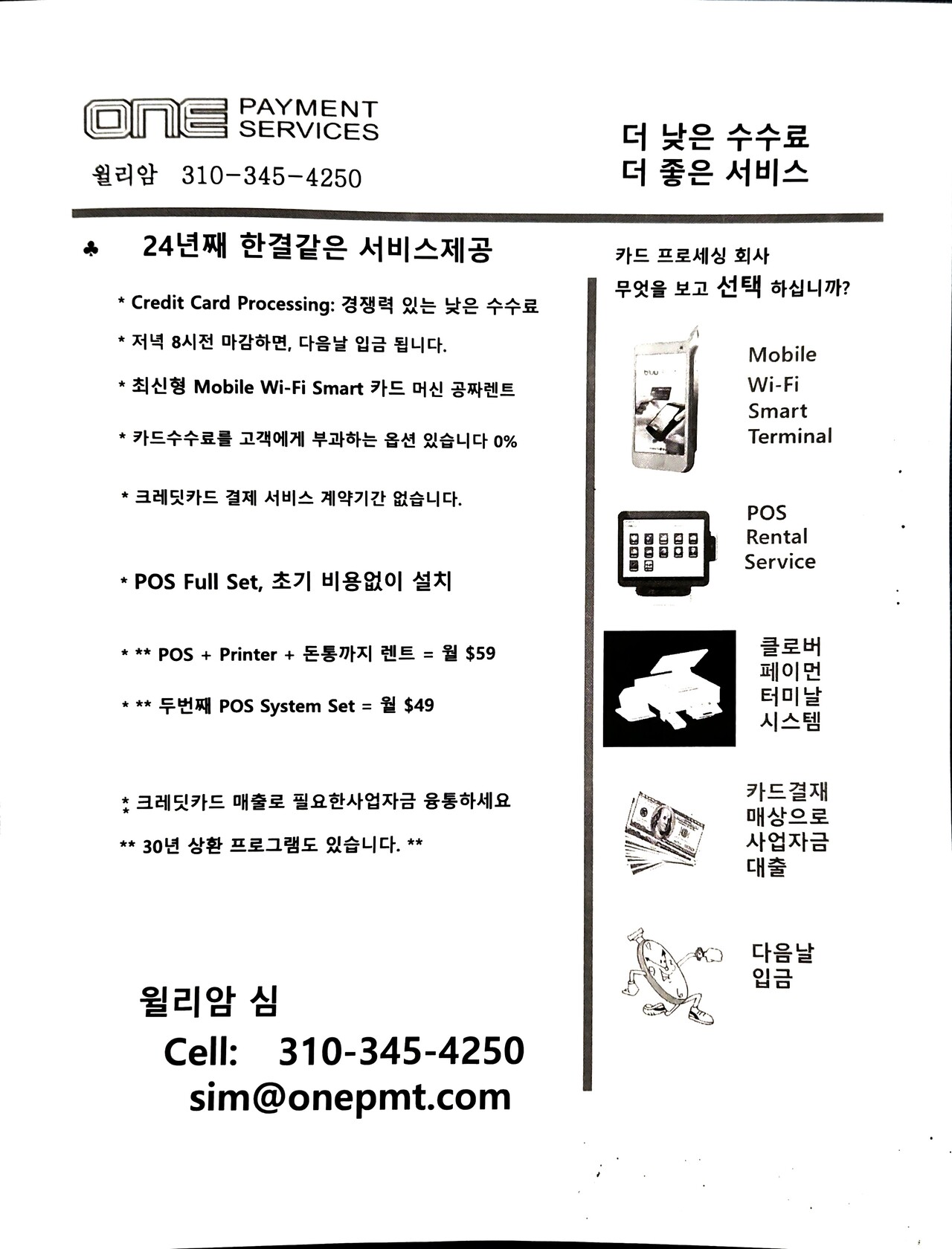 25년째 크레딧카드 프로세싱 서비스 제공 하고 있습니다