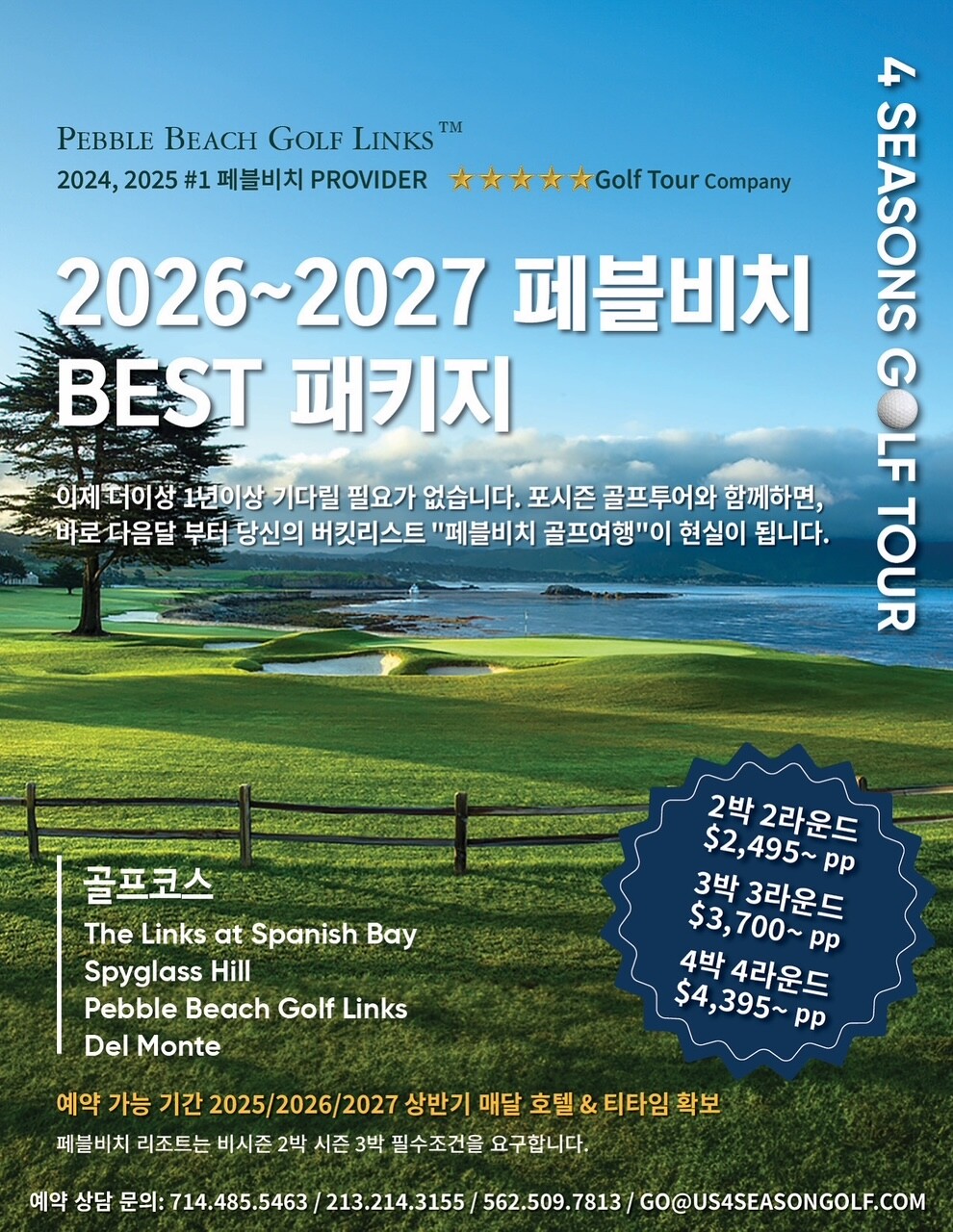 ✔ 향후 2년간 Pebble Beach 골프 티타임 확보