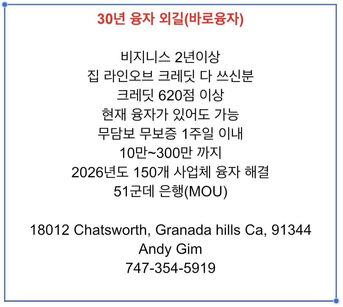 30년 융자 외길(바로융자)