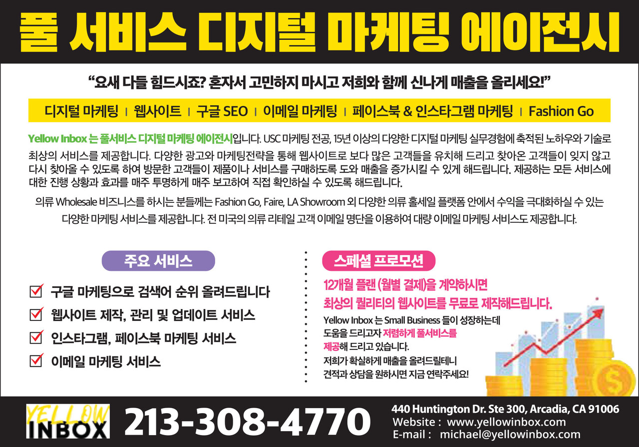✅ 문의/상담: 213-308-4770 (전화·카톡 가능) | 이메일: michael@yellowinbox.com