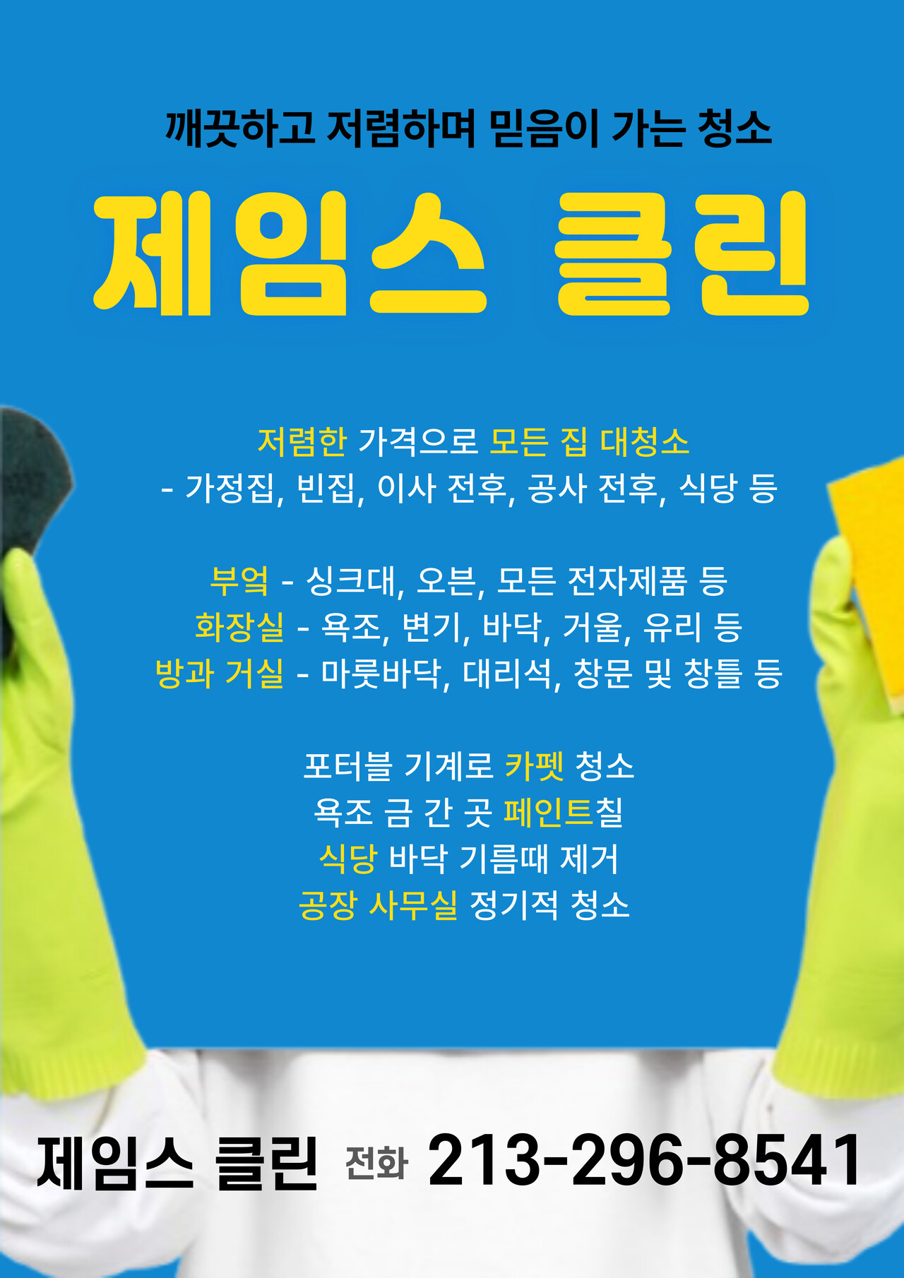 한인 들로 이루어진 프로페셔널 청소 업체