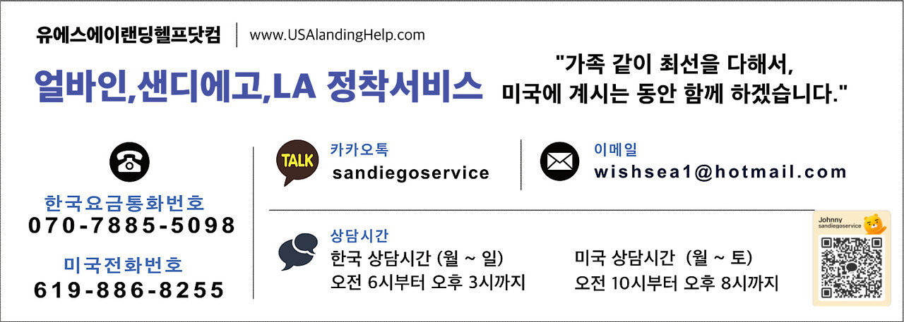 정착서비스에대한 정보는 미국 정착의 신 좌니 공식 홈페이지(usalandinghelp.com)를 방문하셔서 확인하시기 바랍니다.