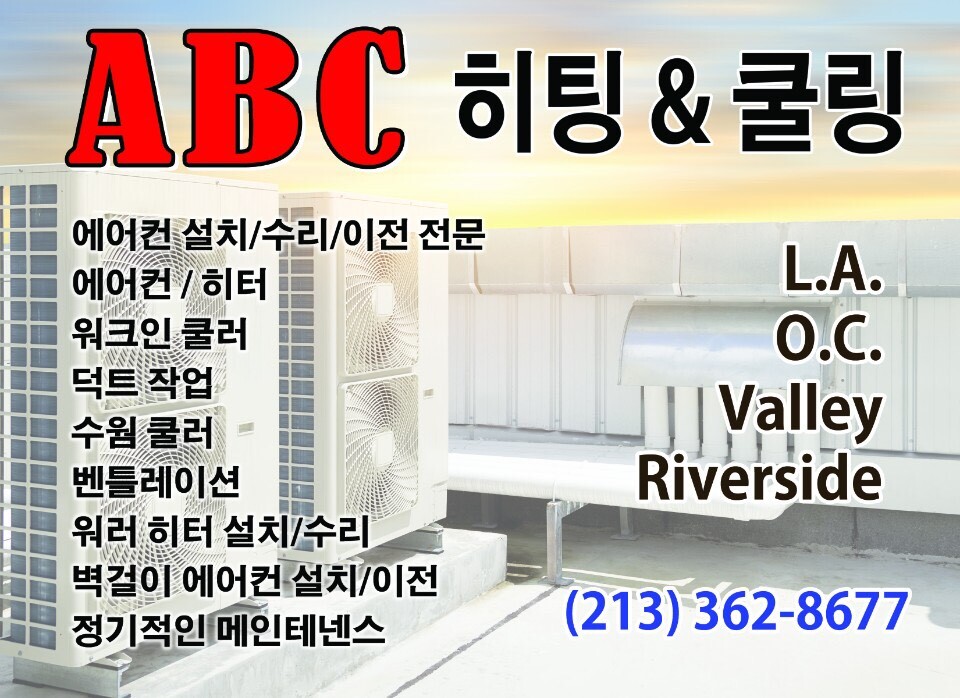 ABC 에어컨,/히터/ 온수기(Tankless Water Heater), 설치 수리합니다.