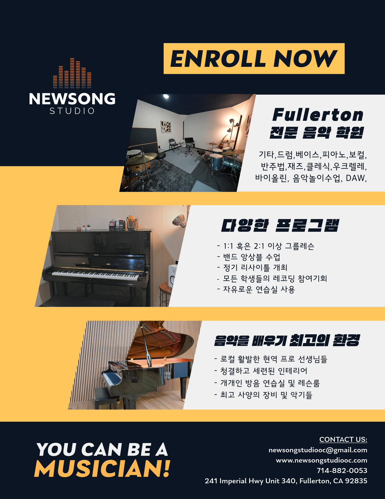 가장 전문적이고 가장 친근하게 음악 레슨을 받을 수 있는곳!  NEWSONG Studio입니다!