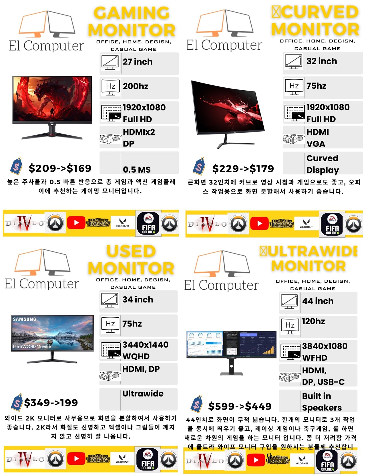 모니터 (New, 중고) 최저가로 판매합니다.같은 모델이나 비슷한 사양 링크했습니다. 더 저렴합니다.