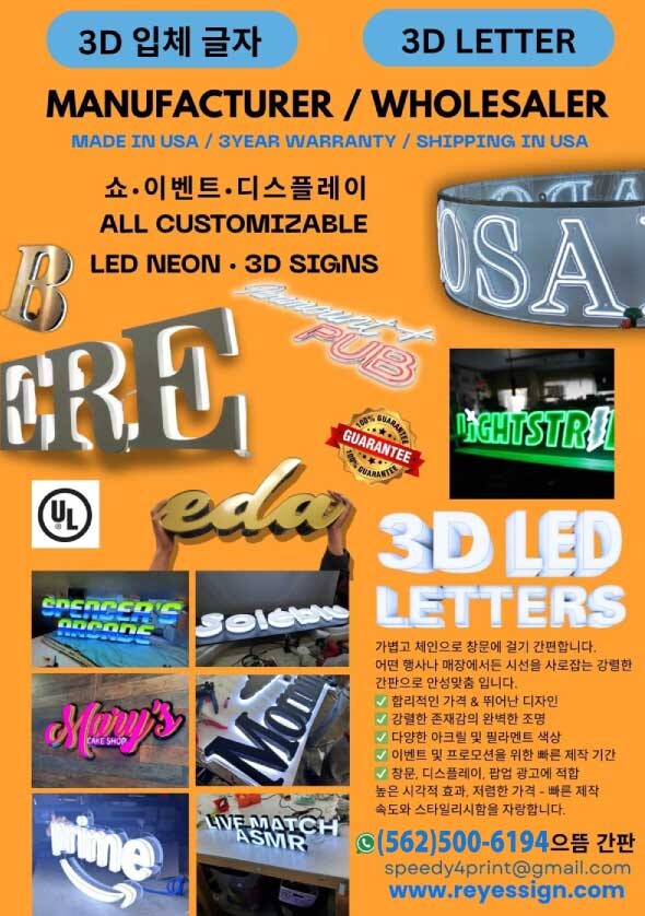 실내와 실외 LED (3D글자. 네온. 스크린 전광판) 각종 글자