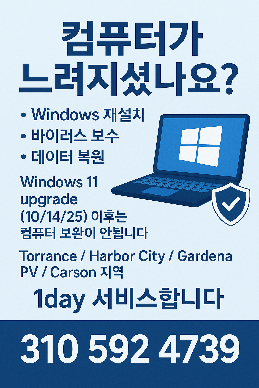 Windows 11 upgrade (10/14/25) 이후는 컴퓨터 보완이 안됩니다)