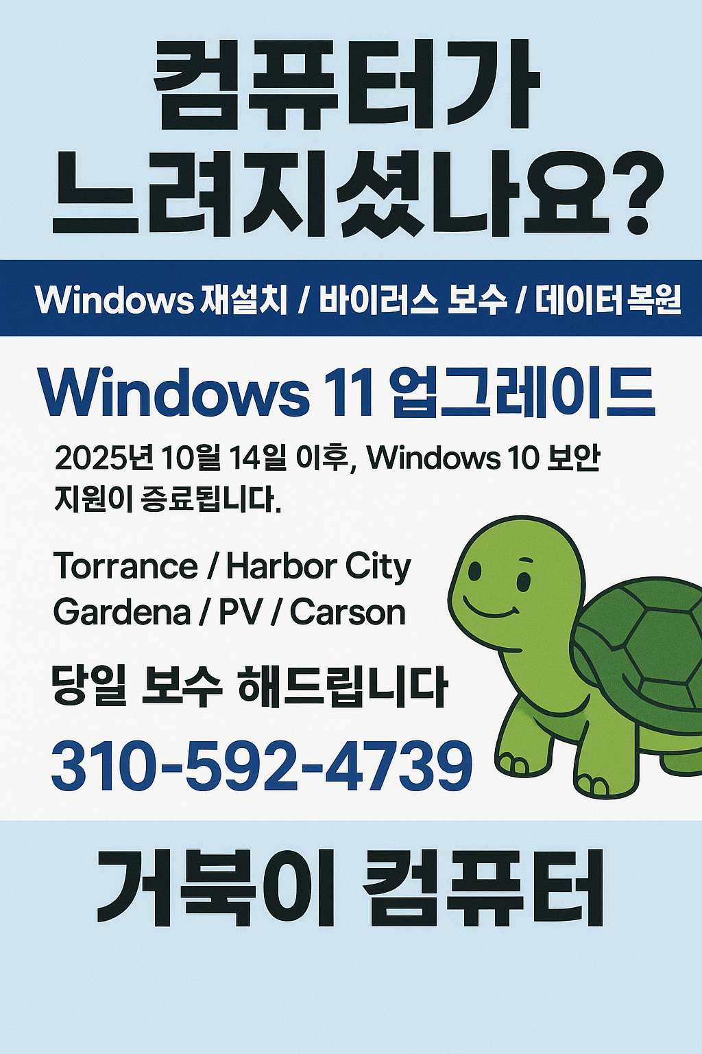 Windows 11 upgrade (10/14/25) 이후는 컴퓨터 보완이 안됩니다)