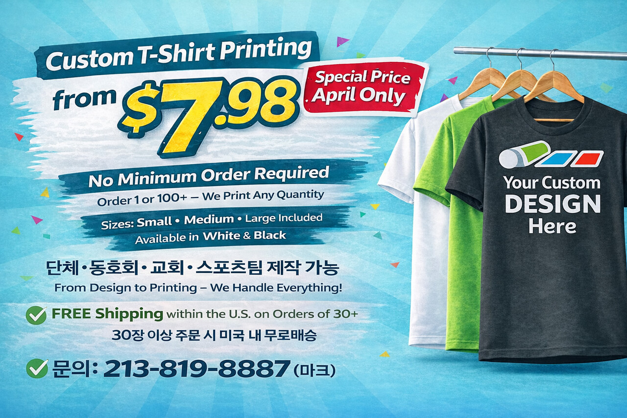1장의 샘플 티셔츠도 프린트 해드릴수 있으니 과감하게 연락주세요. 감사합니다.
