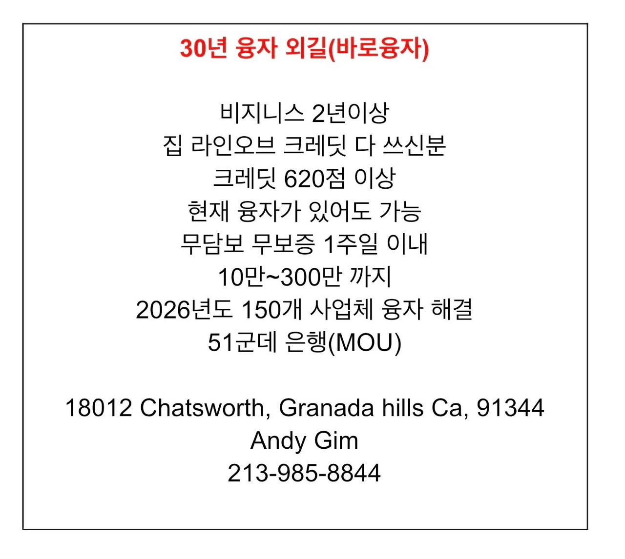 비즈니스 융자. (30년 융자 외길 바로융자)