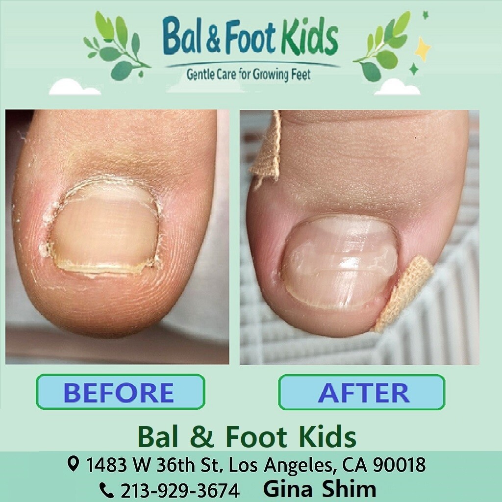 Bal & Foot Kids는 아이 전용 부드러운 한국식 교정 방식으로 성장기 발톱 방향만 바로 잡아 자연스럽게 정상 발톱으로 유도합니다.