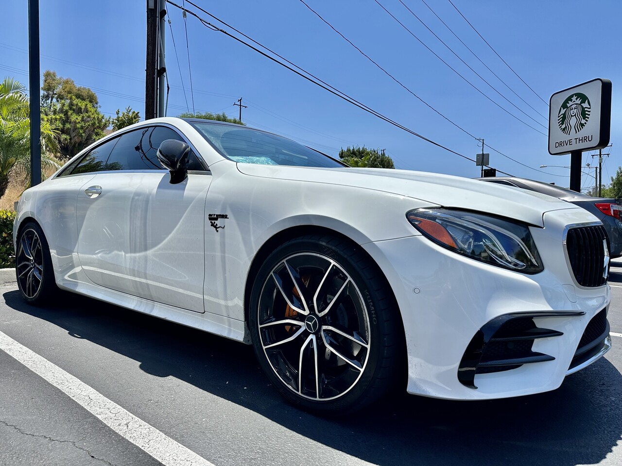 Model : 2019 E450 Coupe White / Beige, AMG Pkg & AMG Sports Brake with 20inch AMG wheel