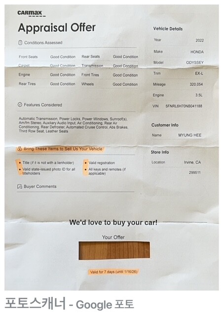 4. car max 에 다녀 왔습니다.(사진 참조)