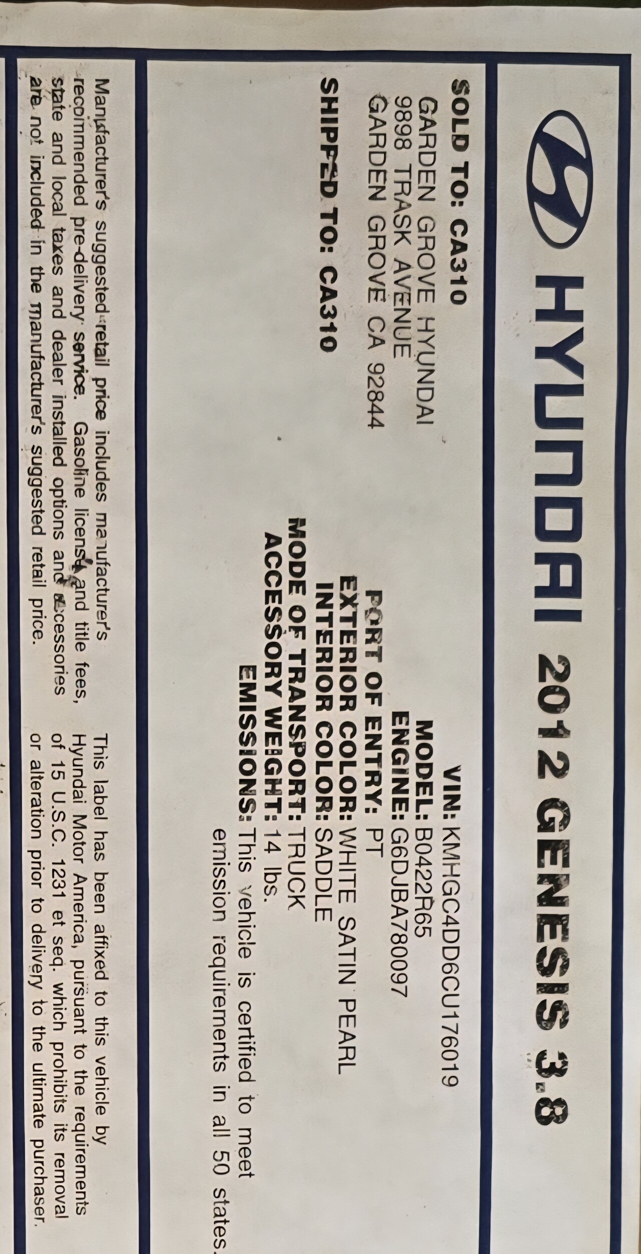 2012 Genesis G38