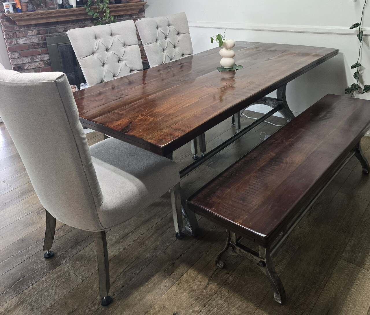 구성은 테이블 1 개 , 벤치의자 1개, 의자 3개로 구성 되어 있습니다.