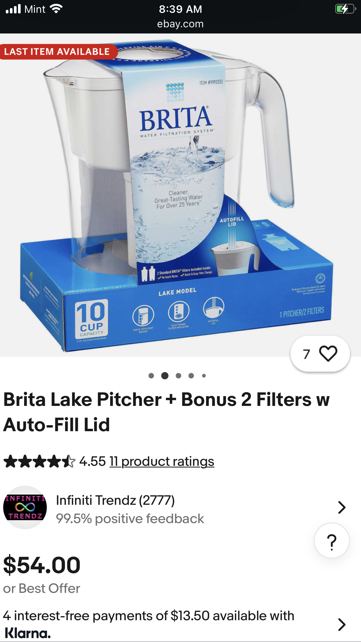 -  피쳐 사이즈 브리타 정수기와 새 필터 2개 포함이고