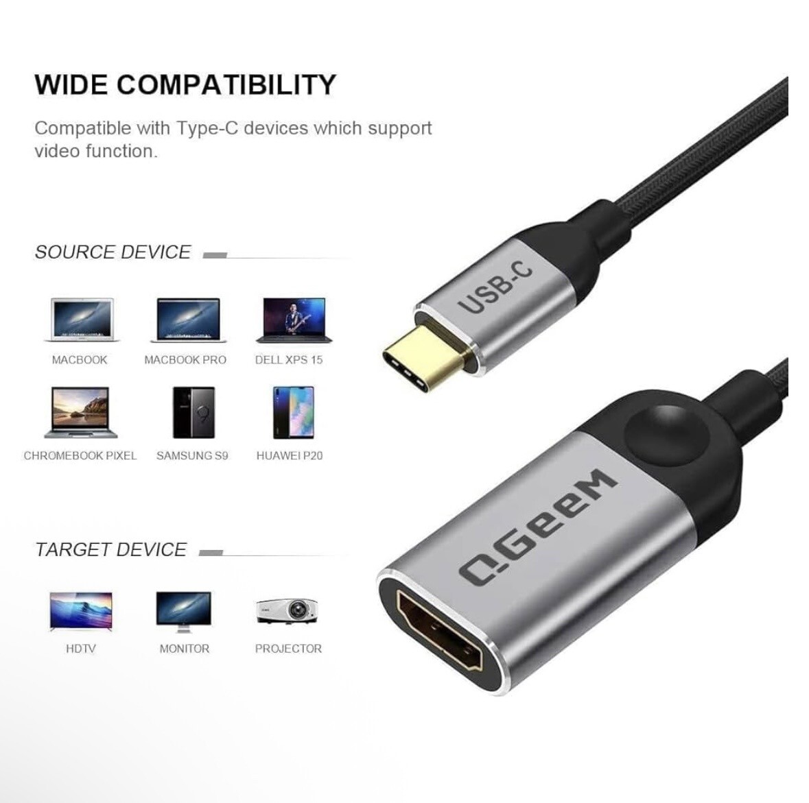 USB C to HDMI Adapter 4K Cable, USB Type-Cto HDMI Adapter [Thunderbolt 3/4] HDMI for Laptop MacBook Pro/Air, iPhone 15 16 17
