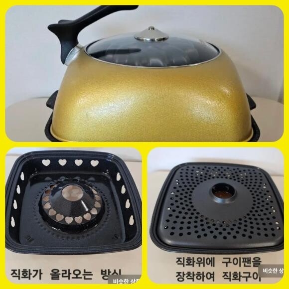 기능: 재료를 내부 그릴에 올려놓고 하단 팬에 물이나 기름을 채운 후 가열하여,