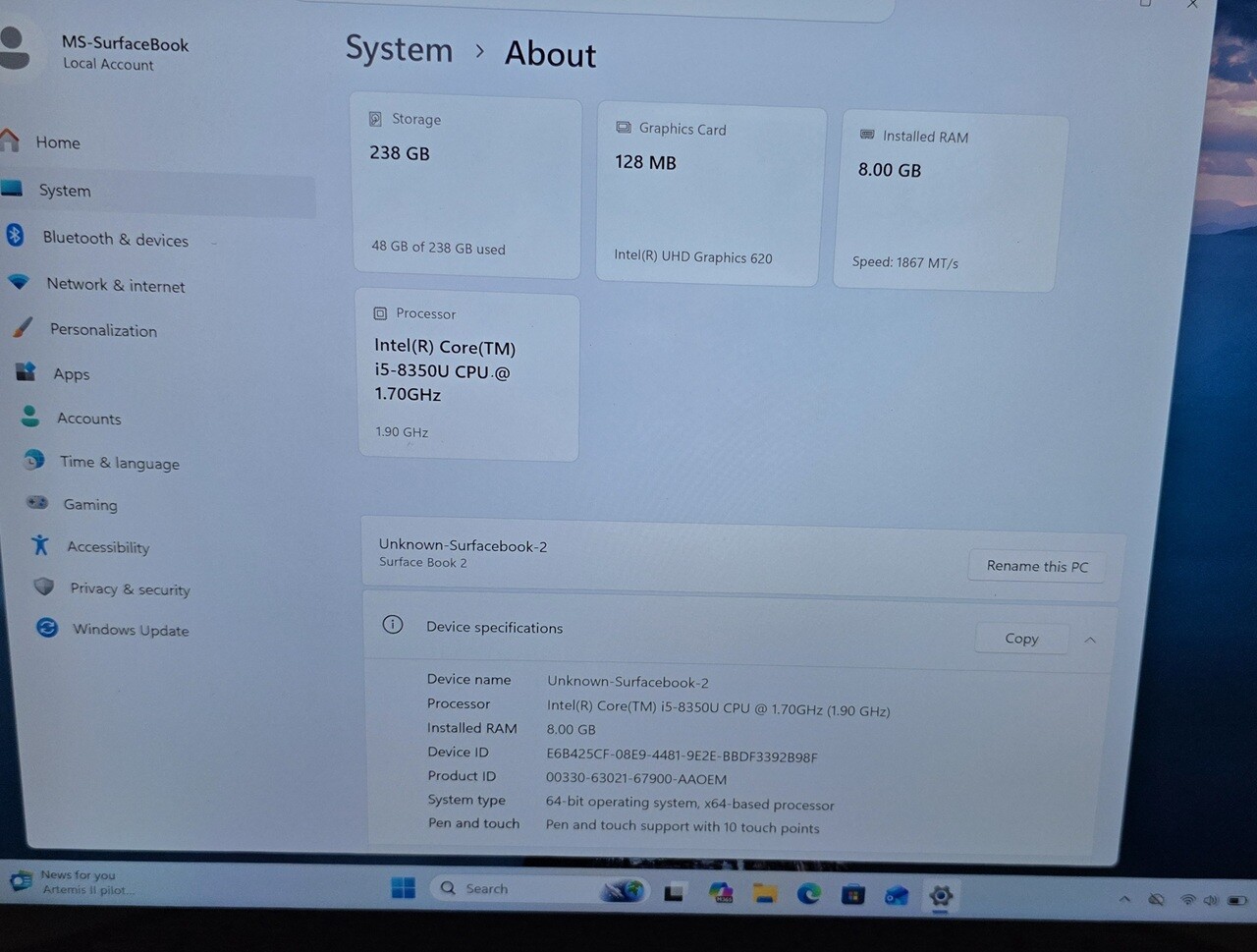 - 인텔 Core i5-8350U CPU, 13.5" 3000x2000 터치 스크린(3:2 화면비), 8GB DDR4 메모리, 256GB M.2 SSD, Amazon Basics Type-C AC-adapter included.