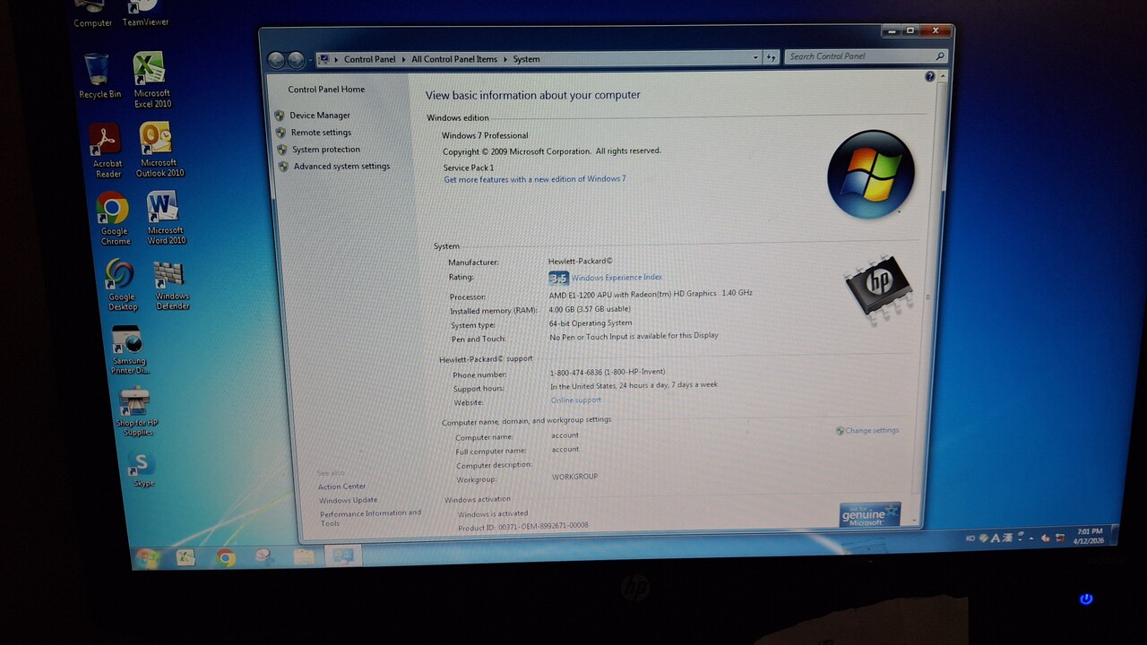 HP P2-1334 Desktop + 20인치 모니터 + 마우스/키보드 모두 포함해서 $40 에 팝니다.