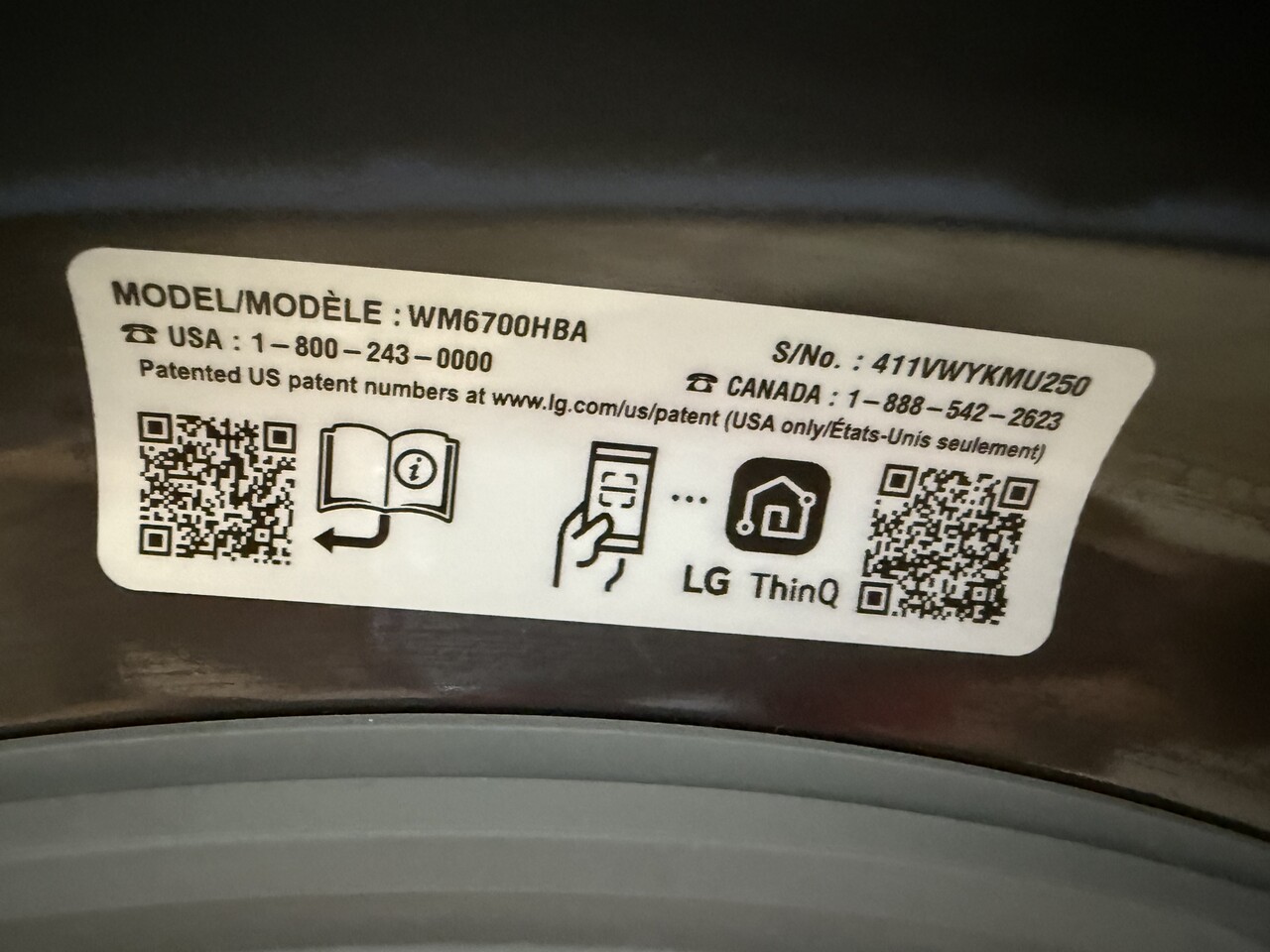 10 개월 사용한 LG ( model WM6700HBA) 큰 새탁기