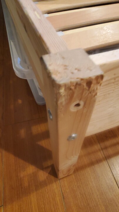 이사하면서 볼트 몇 개가 없어졌지만, 있는 볼트로 조립해서 2년정도 사용하면서 불안정감은 없었습니다(침대에서 뛰면 어떨지는 모르겠습니다).