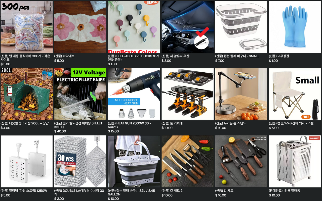 - 하루혹은 이틀에 물건 최소 하나씩 올립니다. ( 주로 저녁 9시 이후 )