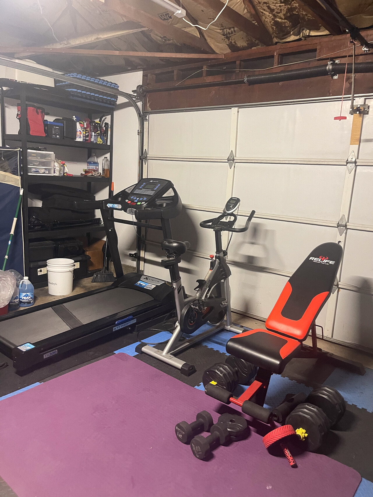 실내 운동(런닝머신 헬스벤치와 덤벨)