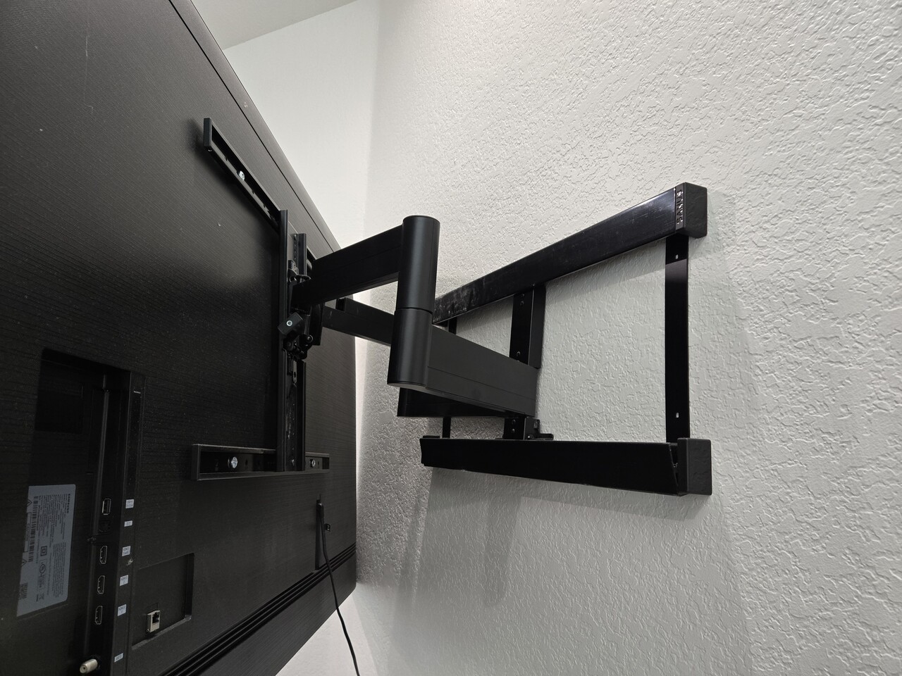 장점: TV 위치를 원하는 대로 조절하거나 벽에 깔끔하게 설치할 수 있습니다.