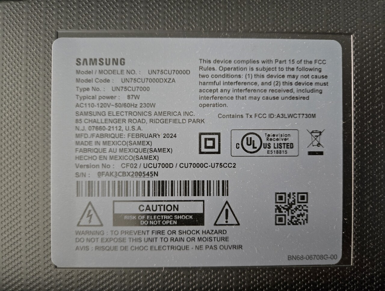 거실을 영화관으로 만들어 줄 거대한 75인치 삼성 Crystal UHD 4K Smart TV를 판매합니다! 이 TV는 2024년 2월에 제조된 거의 새 제품이며, 275달러 상당의 튼튼한 고급 벽걸이 마운트까지 포함하여 총 $650에 드립니다. (새 제품을 사는 것보다 훨씬 저렴한 가격입니다!)