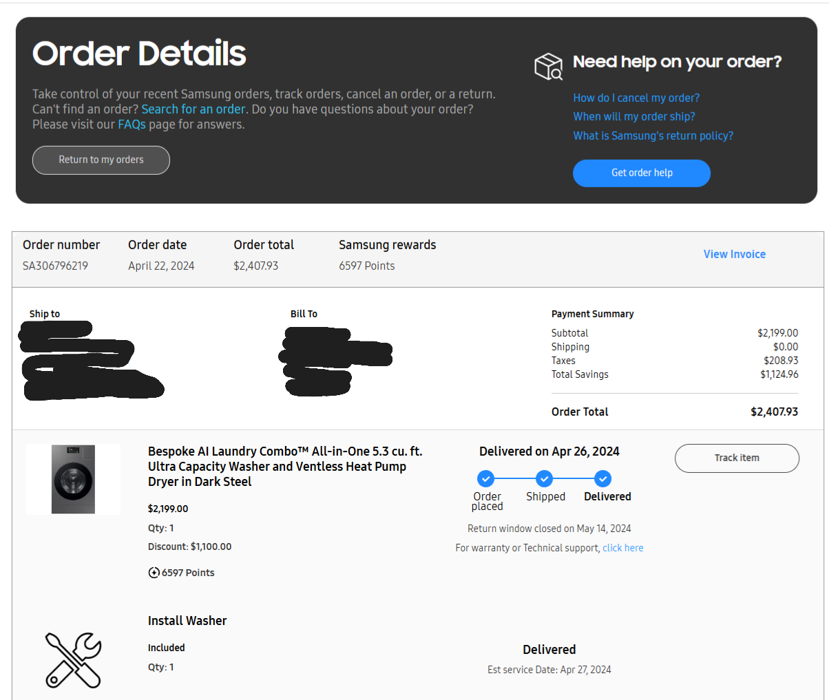 삼성 Bespoke AI All-in-One Combo 세탁기 5.3 cu