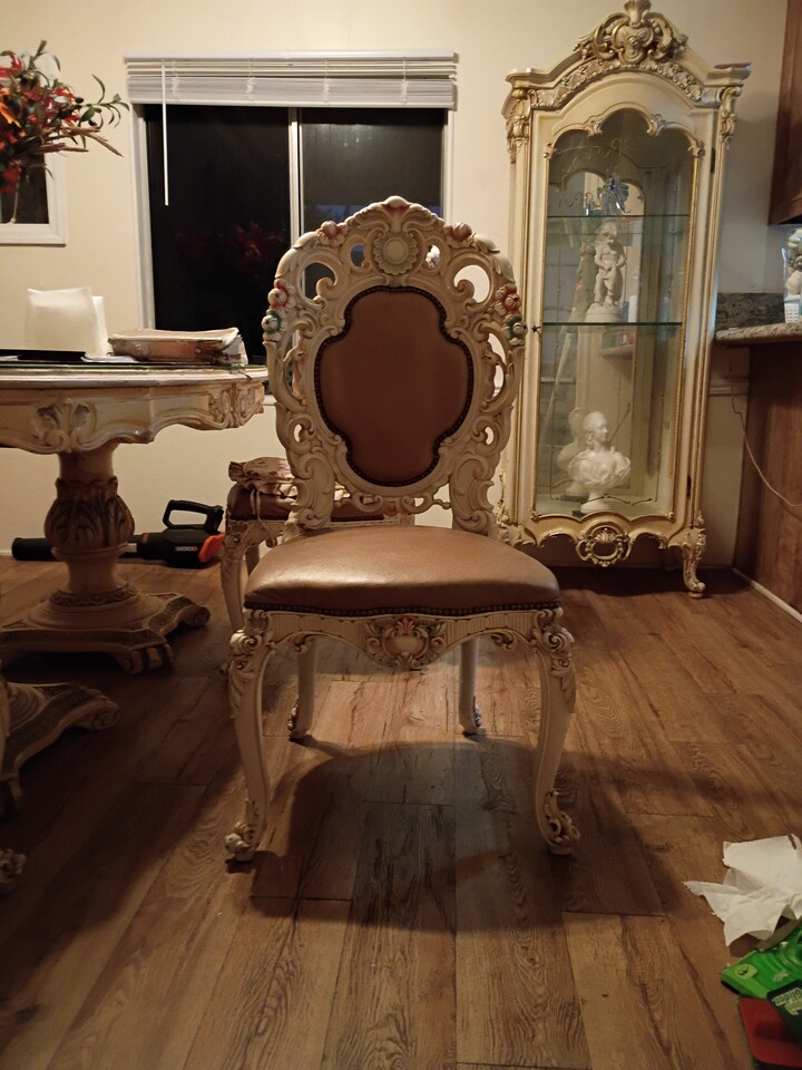 Hello up for sale is a SET of 6x Dining chairs/1x Make up Stand/ 4x sitting chair and 1x Sofa.