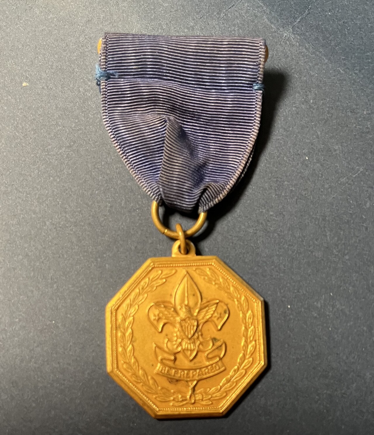 1950’s Boy Scouts of America “Be prepated” octagon medal with blue ribbon