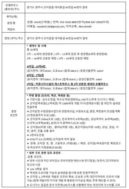 • 입지: 곤지암역 도보권 / GTX-D노선 예정 / 강남·판교 40분 내 진입
